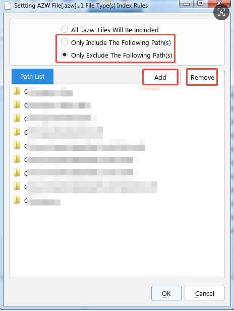 Add/remove directories that you want to include/exclude