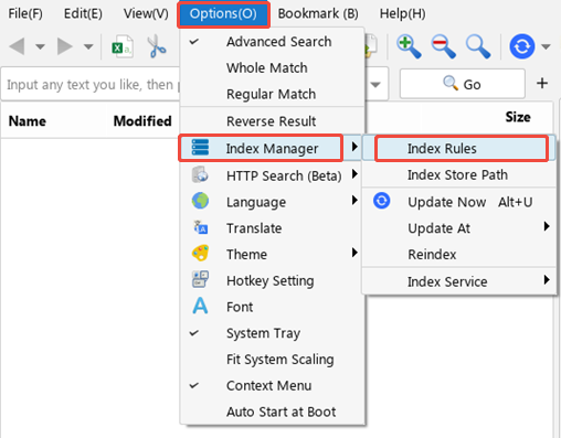 Options->Index Manager->Index Rules