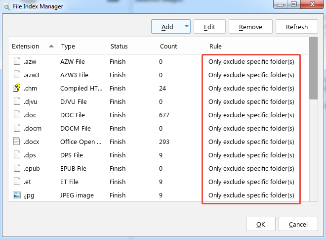 After rebuilding the index, you can also set the search scope in the search type to exclude directories that do not need to be searched, which can free up some disk space.